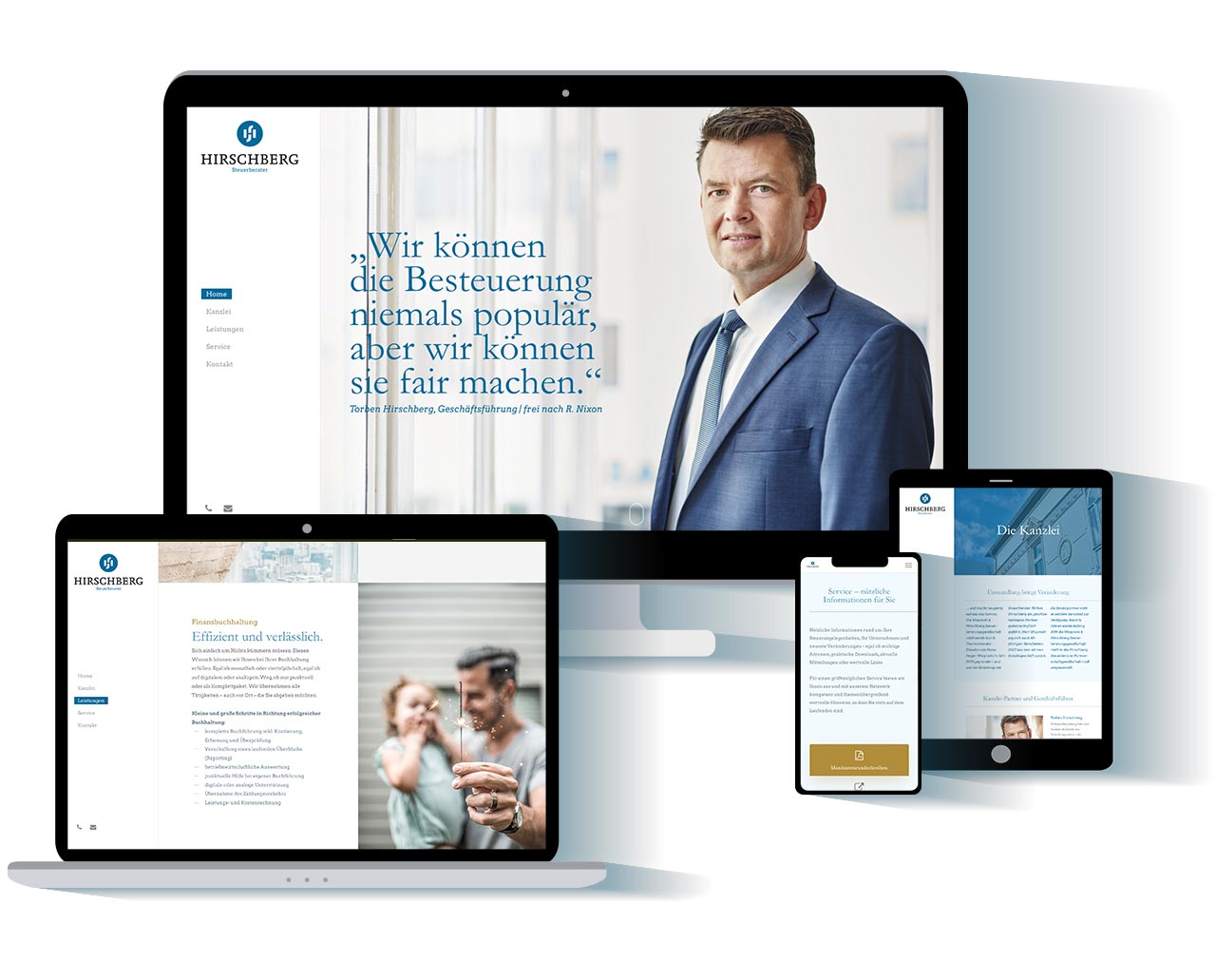 Nach einer Umfirmierung der Kanzlei wurde von rheinweiss ein neues Corporate Design entwickelt. Dazu gehört auch eine neue, moderne und technisch aktuelle Online-Präsenz sowie deren regelmäßige Pflege und Wartung.